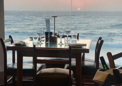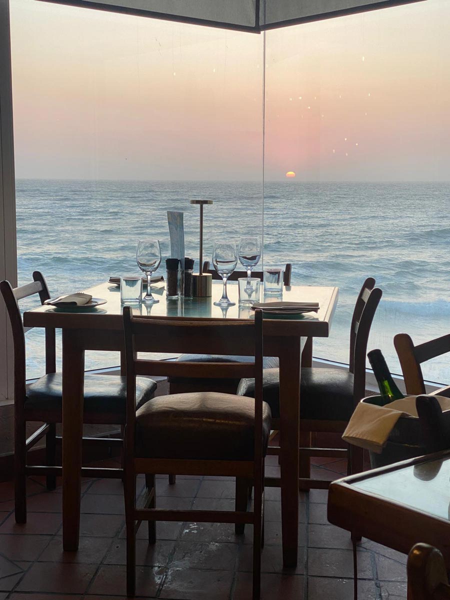 Po dni stráveném u oceánu přijde vhod zasloužený večer v restauraci s výhledem na zapadající slunce nad Atlantikem.